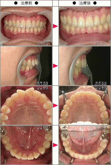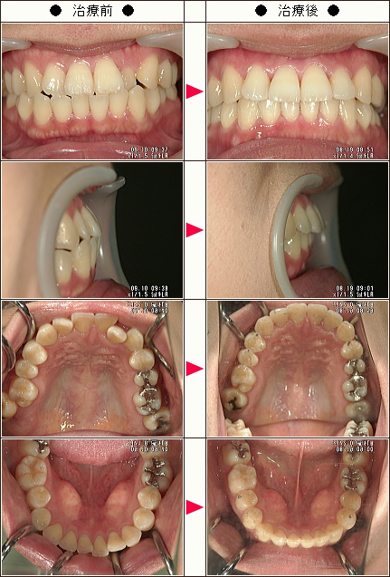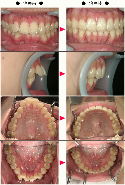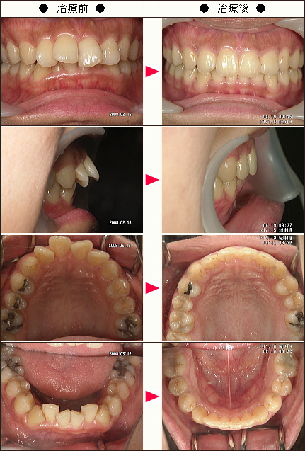 治療詳細 歯列弓を広げて奥歯を後方に動かして前歯の被蓋を改善した